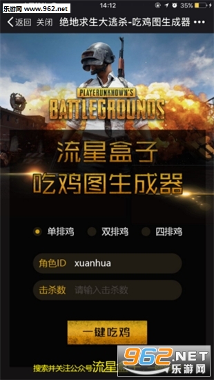 关注“流星盒子”公众号便可使用一款“一键吃鸡”的生成工具。