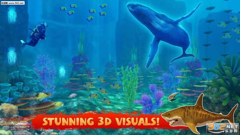 一款精彩的鲨鱼模拟游戏,你将模拟扮演鲨鱼,在深海中进行残酷的捕食行动,玩法非常的刺激,在水中你就说王者,快来看看你究竟有多厉害吧!