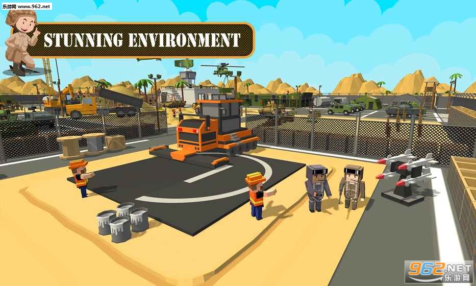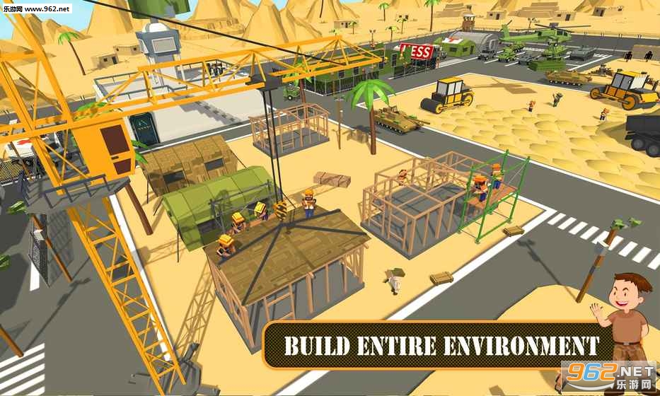 这个城市大亨游戏的故事围绕着陆军团。一个军人遇见建设者,问他想要在这个地方为我们的军队作基地。作为这个块工艺3D建筑游戏的玩家,你必须用不同的对象建立军队基地。这架直升机工程的所有建造过程分为10个层次。在海工艺水平上,您必须通过在施工现场使用叉车和驱动叉车来挑选木板。然后,您需要使用移动式起重机选择木板,并将它们放置在这个世界游戏中的突出显示区域。 2026年这个城市建设游戏的下一个任务是,你需要平放的地方,因为你知道的地方不平坦,非常小的沙子遍布地面。您需要借助于滚筒在工艺和建造中平放该区域。这个挖掘机起重机挖掘机的第二个任务是在道路画家的帮助下涂漆道路。现在你需要通过在这个越野起重机上使用移动式起重机来制作营地的结构,然后你应该使用移动式起重机在这个大城市建设者中放置墙壁。放置武器商店的屋顶。对于这项工作,您可以在这个建筑物的女孩游戏中使用叉车。你完成了这个沙漠岛的建筑面积。下一个分配的任务是通过使用砂土机将沙子扔在实践区域。在这个市长模拟器中,您将体验直升机和陆军坦克的驾驶。你在这个大型城市建设中要做的其他任务是为军队建一个医院和饭厅。做好所有这些工作,充满热忱,在这个城市建设游戏中玩得开心。