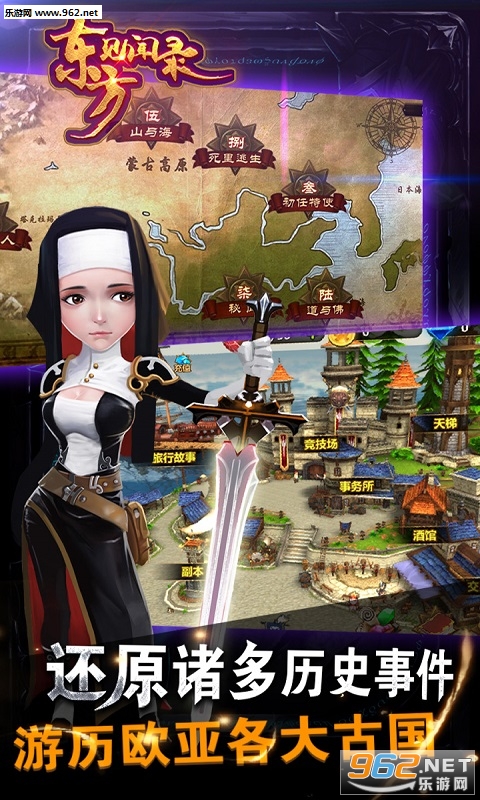 《东方见闻录》是一款以马可·波罗游历欧亚诸国、亲历中原十几年政史变迁为背景,融合正统TCG卡牌策略、角色扮演、生产交易等要素的3D实时对战创新手游。透过对欧亚民俗文化的尊重与奇幻式的人物设定,《东方见闻录》将真实的历史细节浓缩至一个奇幻的世界,辅以完善的成长玩法与竞技系统,使玩家以熟悉的方式体验新鲜。