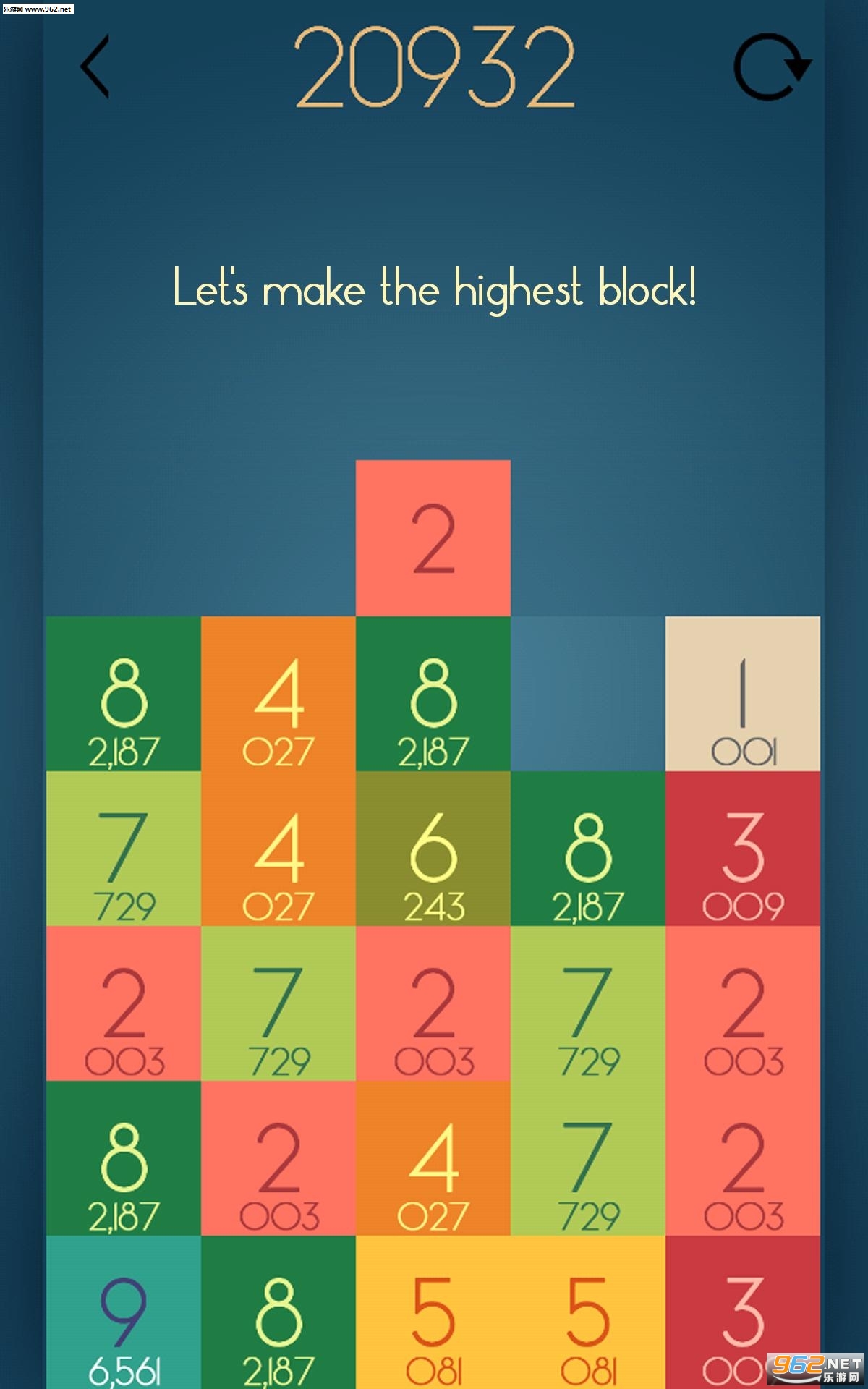 《Ones》游戏画面如名字一样简洁,数字组成的画面看起来倒是别有意境,跟类似填数字游戏一样,不同的是这款游戏你可以通过旋转、滑动以及下落来控制数字方块拼合在一起(这听上去像是俄罗斯方块的操作方式),然后3个数字相邻就会进化成更大的数字。