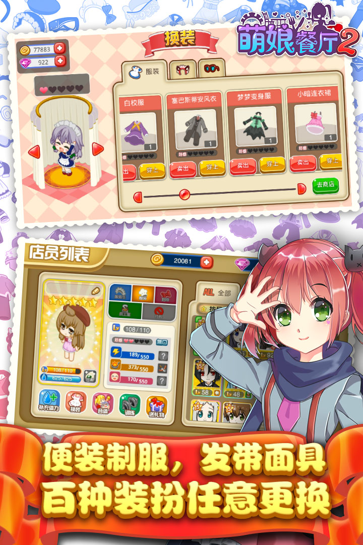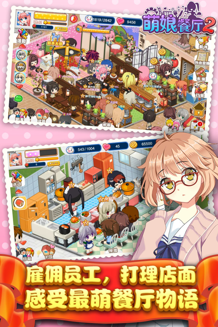 《餐厅萌物语》游戏又叫做《萌娘餐厅2》是一款二次元风格的模拟经营及育成手游,融合了大量时下流行的动漫元素。
