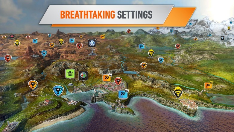 2、自由收集挑战,随时升级你的爱车发挥更强大的性能,游戏中的地图丰富