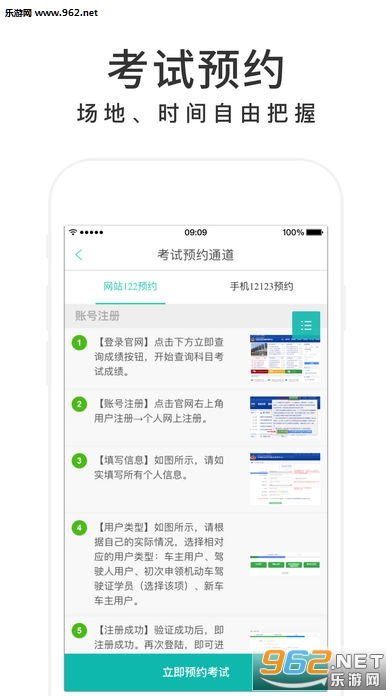 4、一键预约:不出家门轻松预约考试,场地时间任你选择;