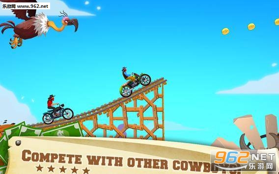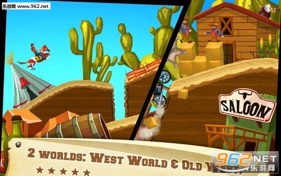 《狂野西部竞赛安卓版》是一款竞速闯关游戏,游戏中你将会驾驶着马匹或者摩托车进行一系列的闯关,各种高山,沼泽,蹦床,旧矿井等等危险和障碍在前方等着你,你需要凭借精湛的技术将这些困难都克服,成为最厉害的牛仔,非常有趣,快来下载体验吧!