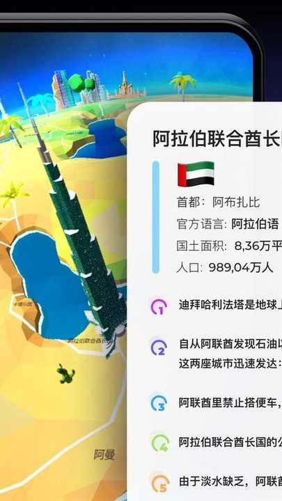3.借助互动百科全书学习关于世界国家名胜古迹有趣信息。地球地理地图册3D把单调地理学变成好玩地理游戏