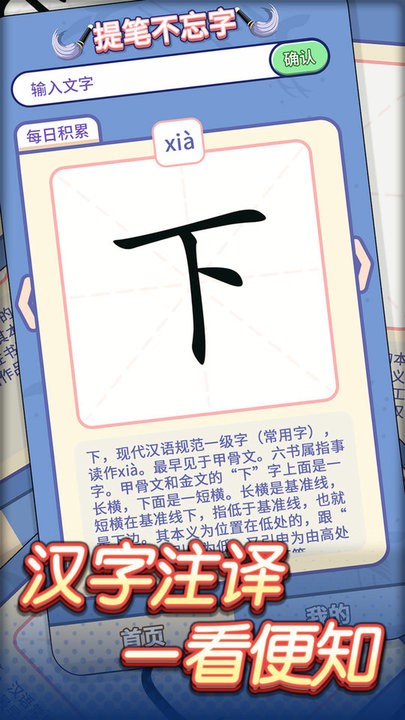 1.提笔不忘字是一个轻松休闲、简单有趣的汉字学习软件