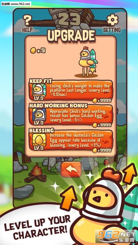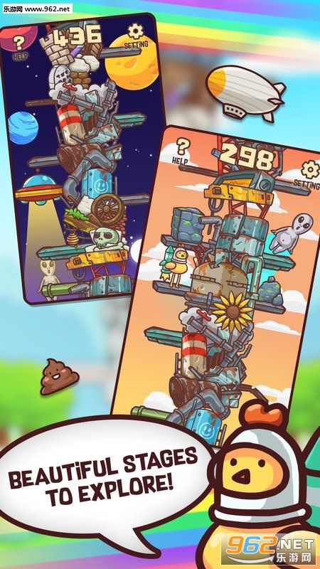 呆鸡大暴走中文版(Jump Madness)是一款有趣的休闲类游戏,在游戏中你需要控制小鸡不断的向上跳跃,躲避各种障碍物,收集到能量,同时不同的高度中会有不同的背景变化!