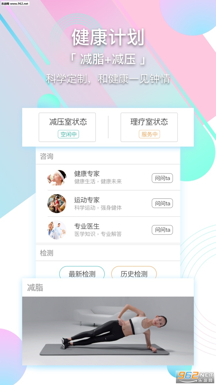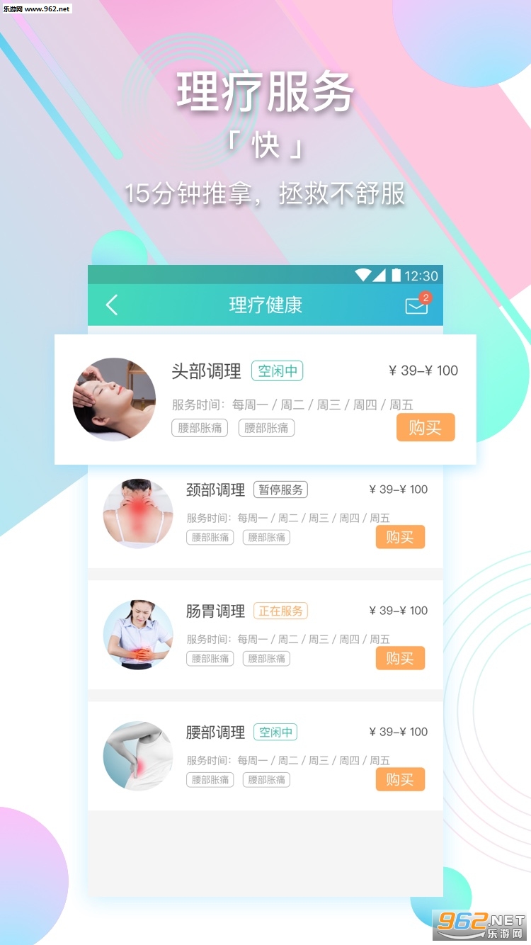 2. 碎片化干预:一刻松推拿,快速缓解不适,放松空间,缓解疲劳,减轻压力,释放负面情绪,专享计划:减肥计划,慢性病管理等。