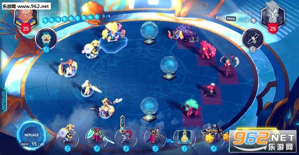 除了使用卡牌,核还有其它两种作用。一种是替换手牌,把暂时不用的手牌丢到魔法漩涡可以更换手牌,每回合只能使用一次。注意,这张被替换的手牌并没有被丢到弃牌堆里,仅仅是回到了卡组里;另一种是移动、攻击对方的英雄,英雄和仆从都能在地图上前后左右移动,也能对敌方发动攻击。近战单位需要站在敌人旁才可攻击,而远程可以不限距离攻击任意的敌人。伤害的计算方式类似《炉石传说》,是双向交换的,己方仆从攻击对方的时候,也会相应受到对方仆从“攻击力”的伤害。