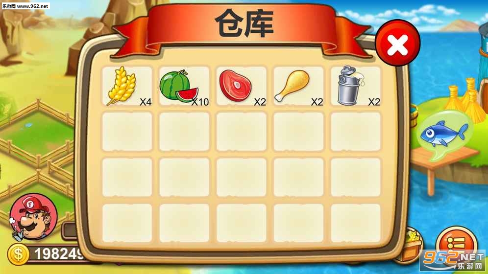 游戏以农场为背景,玩家扮演一个农场的经营者,在游戏中玩家可以种各种农作物,养各种小动物,还可以乘坐乌龟去捕鱼赚钱哦!