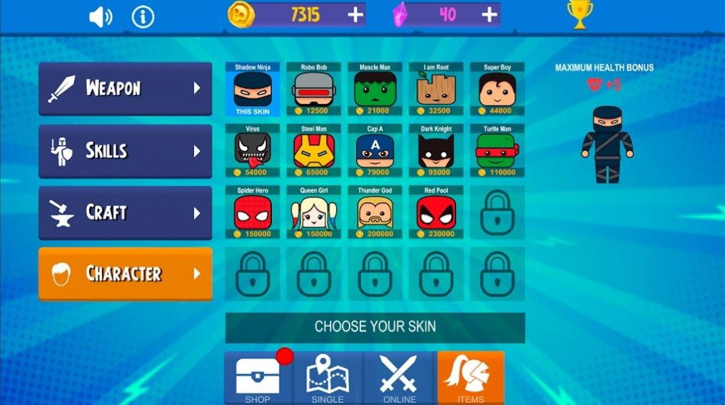 1、游戏角色是一位野心勃勃的忍者,他需要通过各种关卡,战胜各种敌人和BOSS来成为最强的忍者。