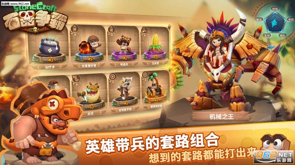 《石器争霸》是一款主打3V3的RTS对战游戏,玩家将扮演指挥官,组建队伍,调配兵力,并亲自上场指挥战斗。围绕你的英雄,进行单位的配置,在战斗中操控自己英雄的走位,并在身边投放配置的兵力,用你的智慧来场精彩的battle