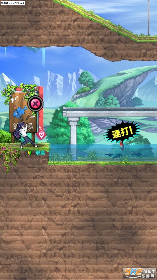 在与敌人的战斗中不须连打触碰,只要锁定后触碰一次就会开始攻击直到打倒敌方为止。因为跳跃中也可以攻击的关係,所以就算是飞在空中的敌人出现,也可以往上拨动并触碰攻击。