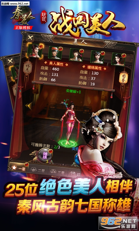 《战国美人》是一款还原战国时期,再现中国硬派武侠格斗场面和25位战国时期美女侍宠为特色的MMO武侠H5游戏。无论您是研习武学技能,还是与25位战国美人朝夕相处、惩治奸雄做一名游侠剑士,亦或是参与七国征战、王者对决成长为国人瞩目的千古帝王,无职业设定力,热血PK与解放双手而结合的新时代H5游戏。