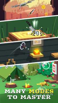 在森林里翻转刀!用最好的刀具成为世界各地刀翻转的大师。 刀和树桩的收集组合。跳转货架上和收集宝物袋。爬上树和捕捉无人机。命中目标奖金!一个有趣的冒险即将开始!,基于物理的现实刀模拟器游戏,超过35个世界著名的刀片(刀具,军刀,剑,斧),将它们收集齐全,对于翻转不同的位置:露营,森林小屋,树梢,树桩在草地上...