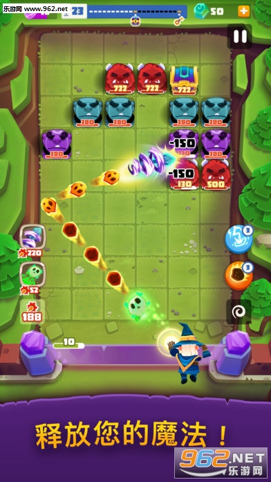 这是 Gram Games 公司开发的最新游戏。你是一位魔法师,正面对怪兽的猛攻。使用魔法击退这些怪兽,并保护你的小镇。你的符咒会摧毁这些怪兽,它们将失去健康——只需确保它们在碰触到你之前将其彻底击败。你每击退一次进攻,就能获得一个宝箱。消灭所有敌人来找出宝箱的钥匙并解锁无价的钻石和黄金,你可以利用这些钻石和黄金提升力量和技能。 你的符咒力量越强大、你的防御力越强,你取胜的可能性就越大。转一转实验室,用来增强你的符咒的力量。冒险进入学校来了解哪些特殊符咒将有助于你击败敌人。务必保持墙壁牢固——这些怪兽具备技能用来突破有瑕疵的壁垒。