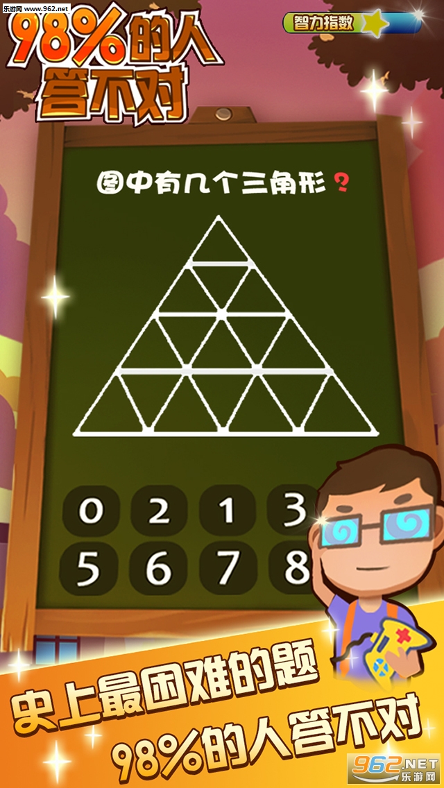 《98%的人答不对》史上最困难的游戏,其实呢,在你想爆小脑子后,总是能找到过关的方法的绝对能给你带来无限的乐趣,非常考验你的思维能力哦。一起来挑战一下吧。
