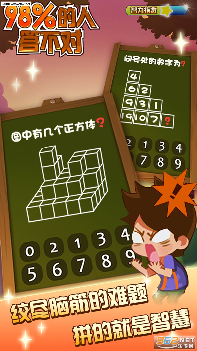 正如游戏名字一般《98%的人答不对》,目标就是解决1道又1道挑战人类智商极限。有些是找规律,就像高中的某些数学题。有些是考眼力,不断提升智商指数,仔细思考下还是可以看出其中端倪的。下面就让小编为大家带来几个关卡的答案和通关技巧。