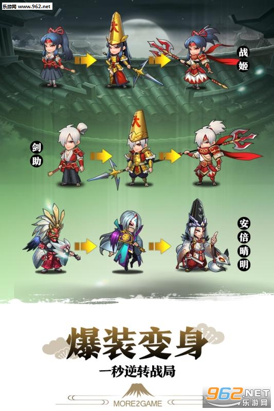每位名将都拥有独特的酷炫大招,上百个武将绝技,数十种兵种特性,组合千变万化,配合排兵布阵,让策略决定战局。更有爆装变身系统,带来一秒逆袭、扭转战局的快感。