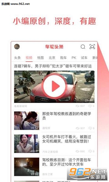 不只是聚合各大网站的汽车视频,还有车轮小编的原创内容,有深度、又有趣。