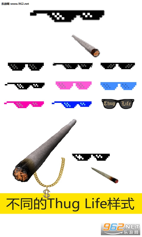 Thug Life图片版!在您的照片添加thug life 流行贴纸吧!您可以扮酷,耍帅,装大款!不同样式的大佬眼镜让您玩转与照片之中!更多功能尽在新版本哦!一起来玩thug life贴纸吧!开启您的照片暴徒生涯!