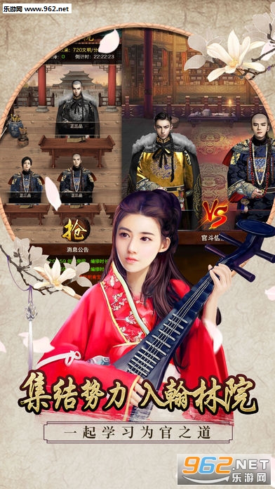 老子去当官是款超级好玩的古风游戏,玩家在游戏中,可以随时体验当官的生活哦,这里有尔虞我诈的官场生活,也有佳人在侧,感兴趣的朋友快来试试吧。