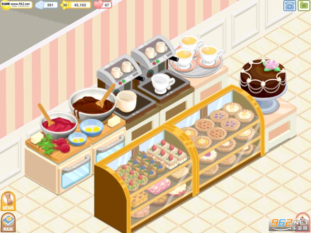 1、一起花点心思设计自己的蛋糕店,向朋友们大肆炫耀!别忘了选择迷人装饰和美味的新式糕点,让顾客心情愉悦、胃口大开!