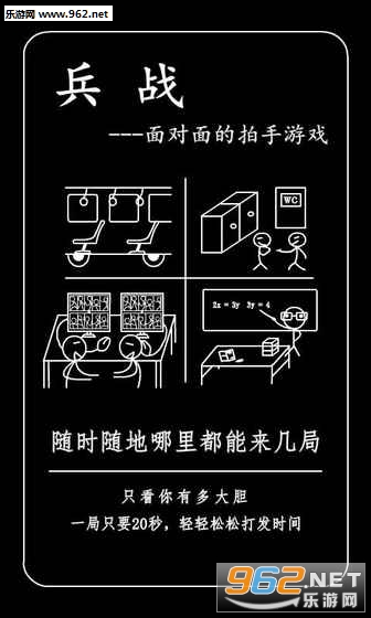 《兵战游戏官方版》是一款玩法趣味十足的策略抽手游戏,玩家将展开另类的休闲娱乐时光,面对面的拍手游戏,还有25种不同的玩法内容,20秒轻松一局,给你带来更多欢乐,还有海陆空三种不同的领域玩法,游戏玩法简单越玩越有趣,感兴趣的玩家快来下载体验一下吧!