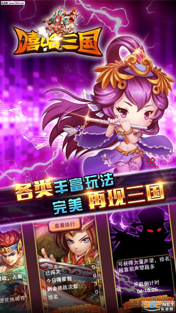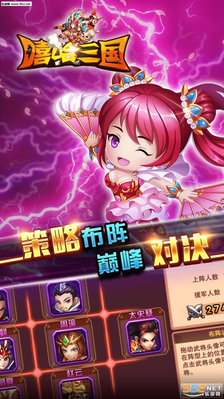 三国挂机手游《嘻哈三国》强势来袭!海量的三国人物,轻松的挂机战斗,让你横扫千军荡平三国!Q版人物,经典回合战斗,技能克制、缘分羁绊、速度与抵抗等丰富的属性彰显顶尖卡牌的策略性。