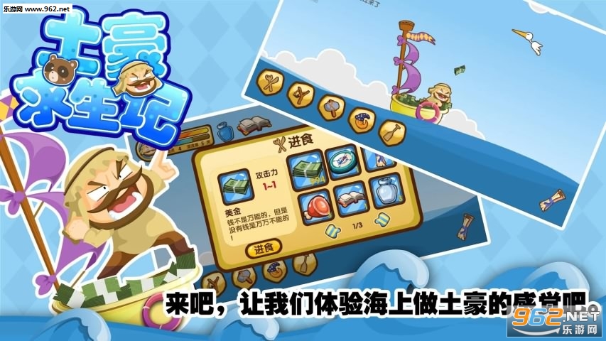游戏中玩家要不断的找到可以让土豪安全生存的办法,土豪的豪华游艇已经被大海淹没,剩下的财宝和金钱在岛上貌似没什么用处呐。