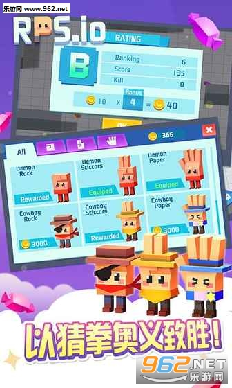 奔跑吧,石头;战斗吧,剪刀;冲刺吧,布;长脚的甜甜圈君,体力糖果条;多样皮肤商城:牛仔系,恶魔系,武道系,快来收集吧!