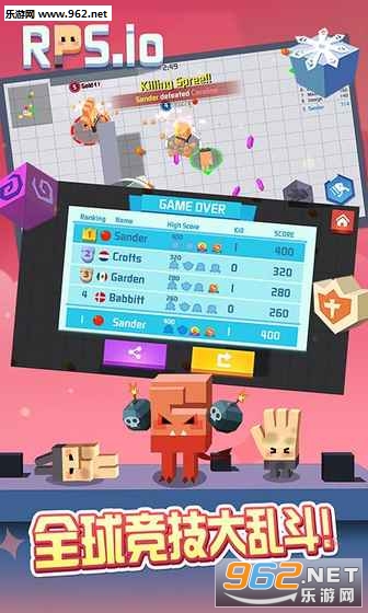 进入游戏之后,可能大家会明显感觉到《猜拳大作战》与之前为各位介绍的《弓箭手大作战》、《神枪手大作战》等此类游戏非常相似,但在细节之处又有着明显的不同。在体验过程中,玩家需要不停的收集场地中的能量块,随着能量的增多角色的体型也会变得越来越庞大。当然,这些都将是浮云,如果遇到天敌,即使是刚进入战斗的新手角色也能将你撞个粉碎。所以,手指与眼睛的配合非常重要,一定要做到眼疾手快才行。