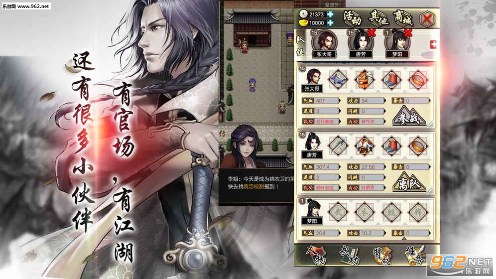 《叫我锦衣卫游戏》是一款古代宫廷武侠类的角色扮演手游,游戏的剧情非常丰富,玩家可以接到各式各样的任务,你需要成为一个不管是在官场还是江湖上都颇有话语权的传奇人物。游戏玩法主要以回合制为主,感兴趣的小伙伴们就快来下载试玩吧!