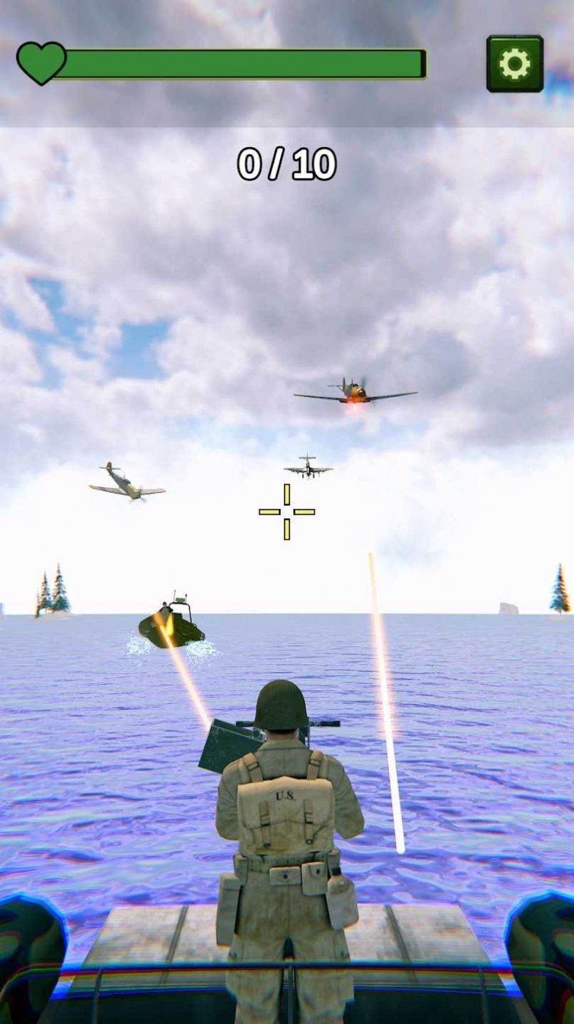 1、玩家通过触摸屏幕操控军舰的移动,合理的移动和精准的瞄准。