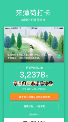 《薄荷打卡app》是一款非常好用的教育软件,能够帮助用户不知不觉中养成良好的生活习惯。早起打卡获取丰厚的现金红包,还能随时记录自己的日常,有需求的话就快来下载吧!