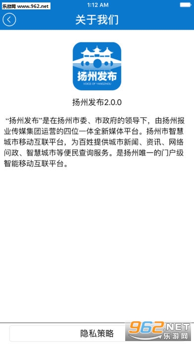 《扬州发布》是在扬州市委、市政府的领导下,由扬州报业传媒集团运营的四位一体的全新媒体。扬州市的智慧城市移动互联平台,为百姓提供城市新闻、资讯、网络问政、智慧城市等便民查询服务。是扬州的门户级智能移动平台。