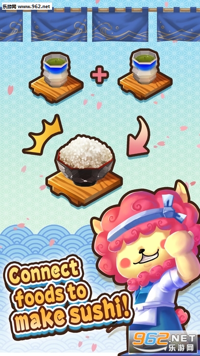 游戏中玩家扮演寿司道场的寿司司傅 Baa Sensei,需要循序渐进,将最基本的日式茶合成,务求合成出终极的极上富士山杂锦寿司併盘!