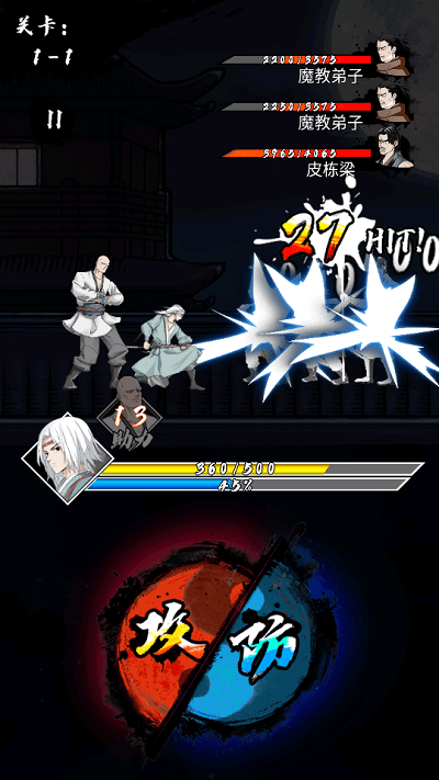 玩家需要不断的加强自己的实力,消灭关卡中的所有对手获得胜利,有很多的武器可以慢慢解锁使用,操作简单,多种不同的英雄可以选择战斗,带领你的队伍一起战斗冒险。传统的水墨画风武侠玩法,只用两个按键,进攻和防御,操作起来非常的简单有趣,开局赠送多名侠客,让你早一步就可以登顶巅峰。
