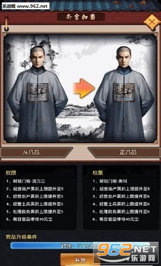3、完善的官品晋升系统,体验封官进爵的快感!
