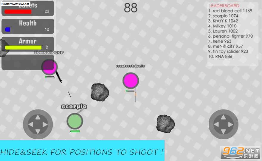 你通过伤害其他玩家获得积分。这个IO游戏的目标是在死亡之前获得尽可能多的点数并杀死尽可能多的点数。