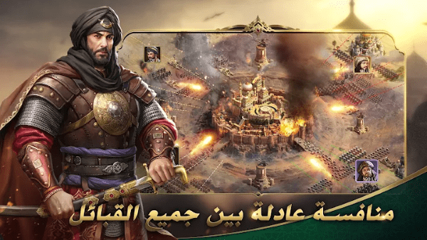 控制士兵与其他玩家进行真实的战斗,“沙漠骑士”游戏中的战斗是多重的,比赛是公平的,游戏100%平衡,包括个人战斗,联盟和部落的战斗,以及王国和王位的战斗。