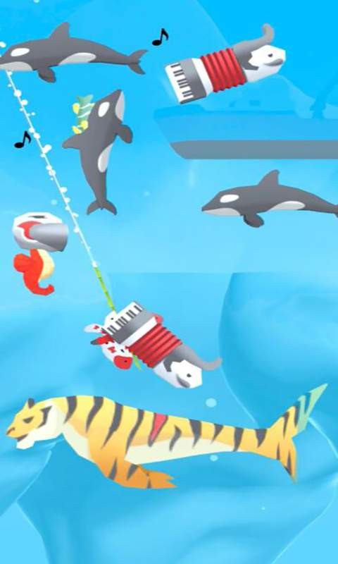 2、玩家在游戏中扮演一位经验丰富的渔夫,乘坐渔船去钓鱼打猎,并使用鱼饵枪等道具来获得钓鱼和打猎的机会。
