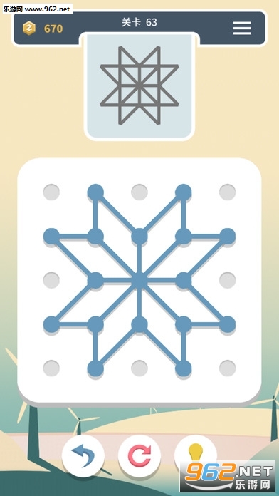 拉动任意一条线段,并固定到某一圆点,从而将其划分成两条新的线段,而新的线段又可以继续划分。有的图形看似简单却耐人寻味,你只需要简单地观察和尝试,并加以一些思考,就能完成一个又一个有趣的关卡。
