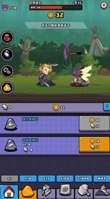 2、收集资源,寻求强大的神器和技能来提升自己的实力。