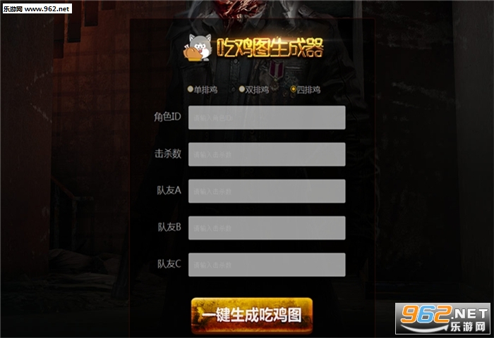 你只需要输入玩家ID和击杀玩家数,网页就可以自动生成一个随机截图,每次的背景都是不一样,并且清晰度非常棒,整体看起来很真实。另外还可以选择双排和四排的模式。