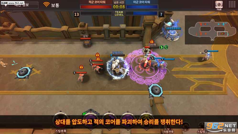 召唤战场的凶徒形成敌人和电力线,占领中立炮塔或怪兽,建立有利的战场,控制英雄套装的能力和技能(转型)时间,在战斗五分钟内对抗敌人破坏核心