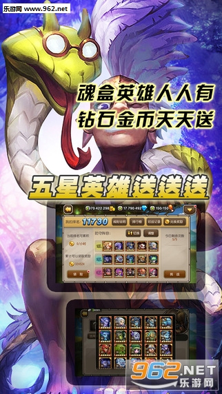 这是一款动作卡牌手机游戏,玩家可以收集到Q版英雄,通过装备附魔、技能升级、英雄进阶提升战队战斗力。