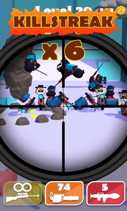 枪炮大师张三游戏采用卡通风格设计画面清新简约,多种职业可自由进行选择,丰富的关卡挑战消灭所有的敌人,获取金币解锁不同的武器,顺利完成目标任务。