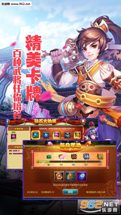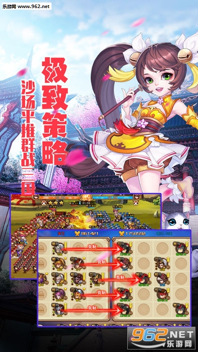 游戏用Q版形象完美展现三国武将,无论是温柔可人的大乔、威猛霸气的吕布还是义薄云天的关羽,都能在卡通画面中产生别致体现。